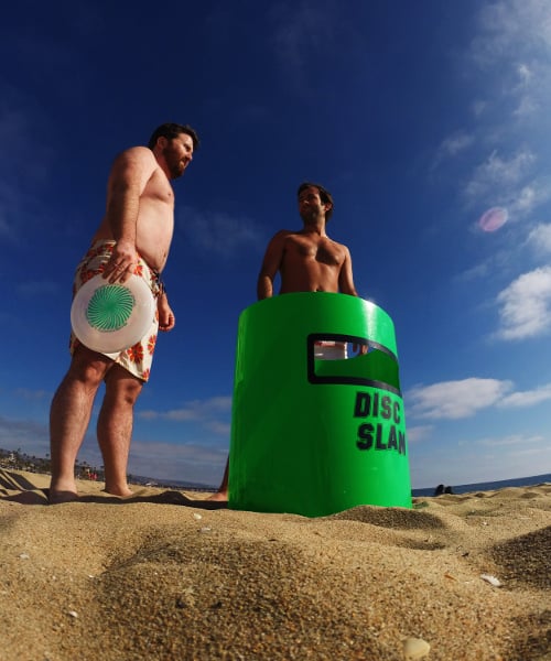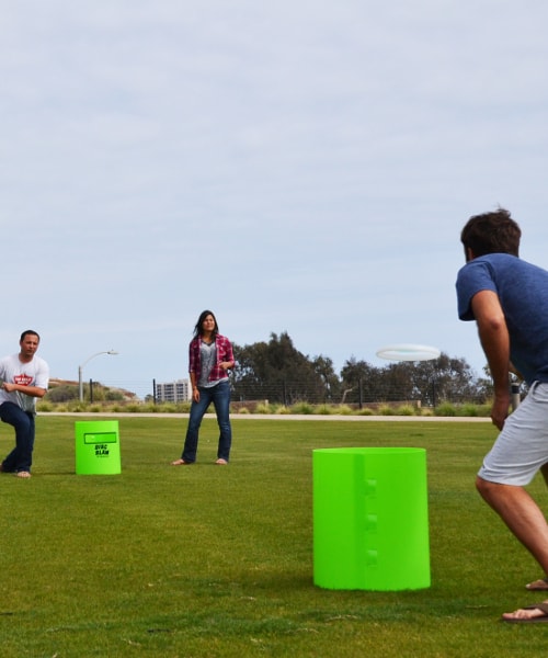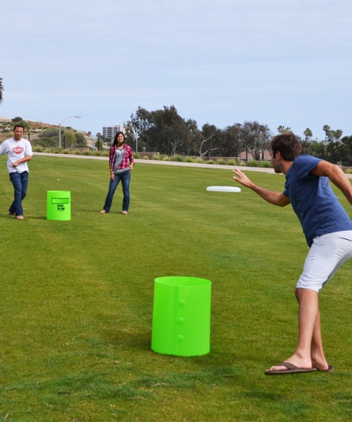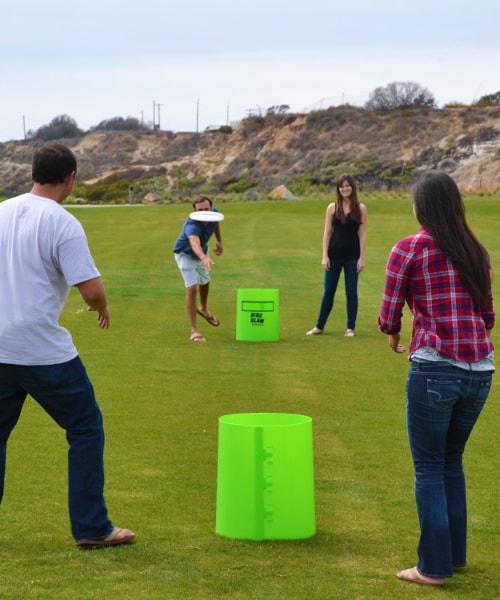 Some people call it “Garbage Can Frisbee”. GoSports calls their version Disc Slam. No matter what you call it, this is a great game to take tailgating, to the beach, the park or the backyard BBQ. Take a look at it in action: