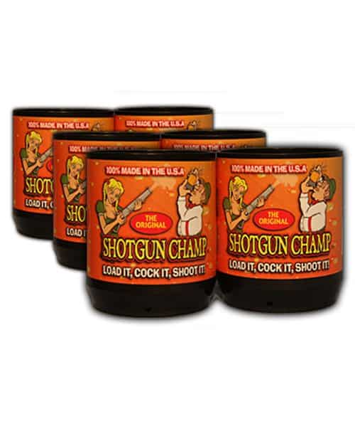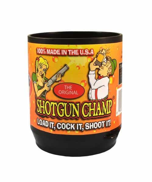 The Shotgun Champ is a plastic cup that has a hexagonal slotted pyramid at the base that punctures a hole in the base of your beer can. There is a mouth piece at the side of the cup where you will receive your beer rapidly. And when we say rapidly, we mean really fast. The Shotgun Champ is designed to empty a 12 oz. can in less than two seconds. Repeat: 2 Seconds!