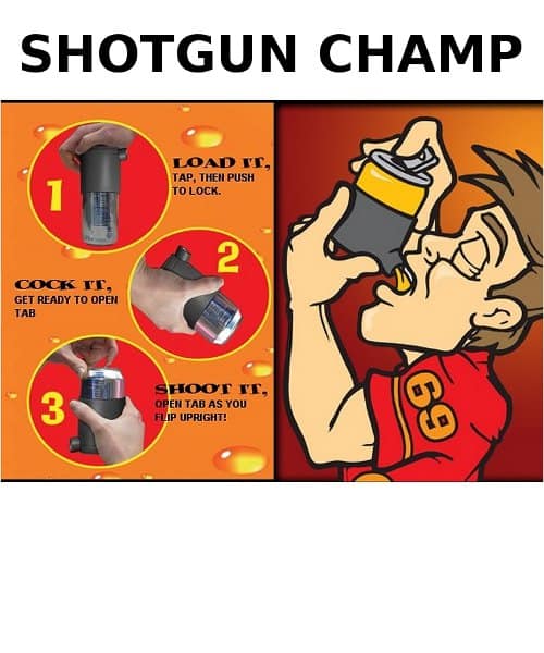 In order to use the Shotgun Champ you will need 1) a beer can 2) a hard flat surface 3) a willingness to pound beer really fast.