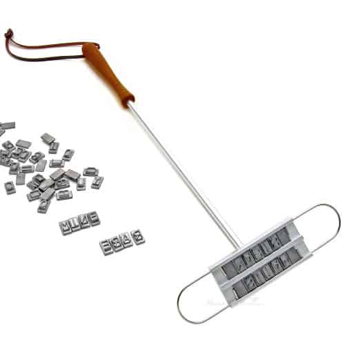 Then just warm it up and start branding those steaks! 16″ long, flame resistant cast iron construction with a wood handle and leather hanging loop. Each individual letter measures approximately 3/4 of an inch x 1/4 of an inch.